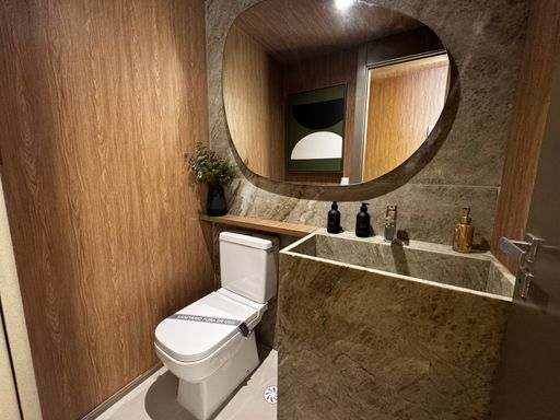 Inclui banheiros, lavabos, suítes e demi-suítes